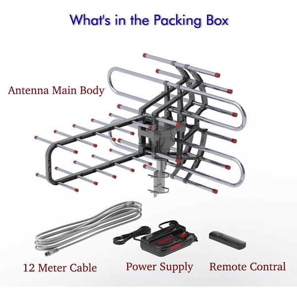 TA-851B 360 Degree Steering TV Antenna 45-860MHz 22-38dB HD Pixel 4K Radiation Range 150 Miles Cable 12 Support 1 TV Outdoor